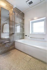 水回りには先進の設備仕様を採用しています。魔法びん浴槽やほっカラリ床で快適な入浴環境を整えつつ、日々の家事にも役立つ浴室暖房乾燥機を備えたバスルーム。汚れにくくお掃除が簡単で、便器洗浄のオート機能や脱臭機能など機能性に優れたウォシュレットトイレ。三面鏡内部に大容量の収納スペースとコンセントがあり使い勝手の良い洗面化粧台には、人工大理石製カウンターを採用。毎日の暮らしをもっと心地よく、軽快にお過ごしいただけます。 |