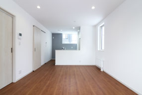 | リビングダイニングは広々として余裕のある開放的な空間です。日差しが室内にたくさん差し込み、部屋全体を明るく包み込みます。キッチンもオープンレイアウトなので、ご家族との団らんなどを楽しみながら過ごすことができます。 |